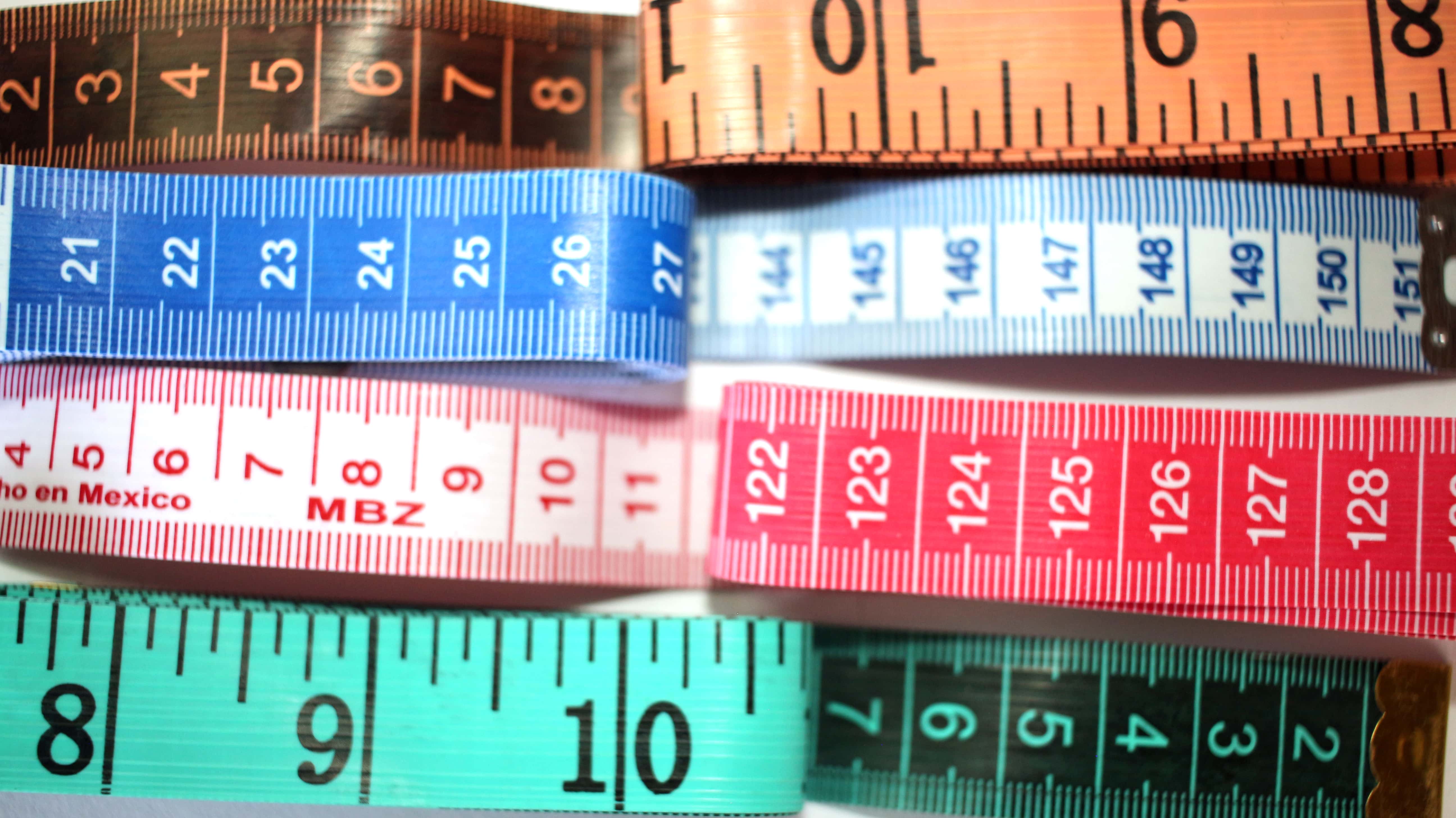 Gran variedad de metros, en colores y medidas (cm, pulgadas).